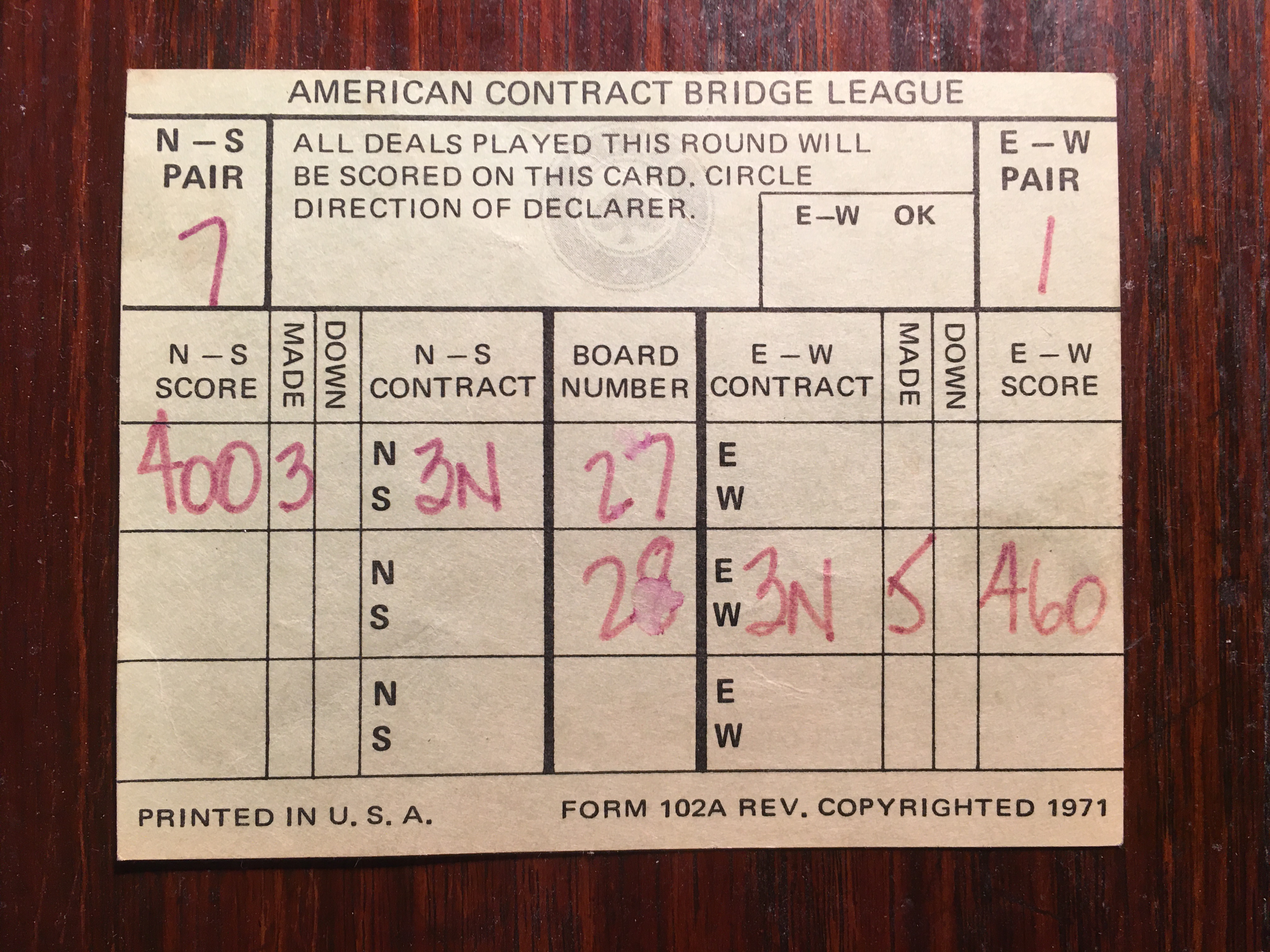 In all the years that I have played bridge, in my opinion there has never been anyone with the star power of Barry Crane. He lit up the room with his personality and presence. He was the greatest matchpoint bridge player of all time. Who knows how many masterpoints and titles he might have accumulated if he had not met his untimely death in 1985. He came to Kansas City circa 1980 with then Kerri Shuman now Sanborn to play at our regional held at the old Glenwood Manor Hotel. My partner was my ex wife Donna Magee. We played in a two session Masters Pairs and after the first session we were one board behind Barry and Kerri. We started the second session against them. The first board was flat. The second board I went after them by bidding a thin slam that could only be made by double dummy looking into our opponent's hands. It was clearly an aggressive slam that went down and I slumped into depression thinking we were out contention for first place. Nothing bad happened after that but not a great number of super boards came our way either. The scores were posted and there was a first beside our names. Wow wow wow what a thrill as we were three matchpoints ahead of Barry and Kerri. Barry and Kerri congratulated us. What a thrill to hear that from our bridge heros. Alas, alas wait, there is someone who had a 40% game posting a score correction in our section. We held our breath as they recalculated. When reposted it was a dead tie. Barry told us "it is only fitting", how gracious is that ? There was another time that Donna and I played against Barry and Dr John Fisher who was one of Barry's favorite partners and a tremendous bridge player. Barry opened 1NT and it went all pass. Dr John laid down a weak 5 card major and about 5 high card points. Barry went down two when they could have made two of the major. Barry put his hand on his hip and in a gently scolding manner chided his partner by saying. Dr John, Dr John, Dr John, "How many times have we gone over this ? We always transfer with a 5 card major. I will HAVE to take you to the wood shed". Another time long ago, when there was still such a thing as a "Men's Pairs", I was playing with a favorite partner of 50 years, Don Brooker. Barry was playing with another of his favorites, Ron Anderson. After the first session, we posted a 72% game. Every one was crowded around the sheets posted on the wall and I heard Barry say in a quite loud voice , "No one is going to catch them". I will never forget that simply because it was Barry who said it. No one did catch us.
